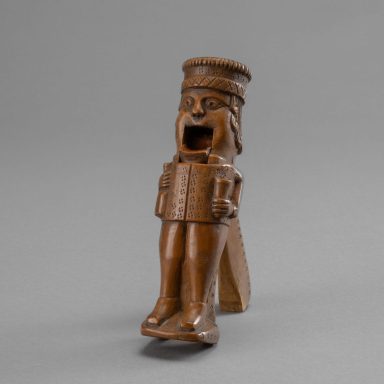 Travail d'époque XIXe siècle, à rapprocher des noix de coco sculptées de marins ou de bagnards. Possiblement aussi un travail de marin au long cours.